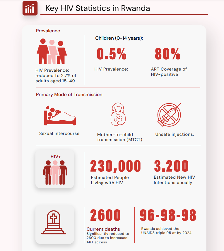 We provide HIV care and treatment services to mitigate the impact of HIV in Rwanda. These services include paediatric and adult HIV care and treatment services, integrated mental health and HIV services, psychosocial care for people living with HIV, care for HIV-infected and affected children, and HIV clinical mentorship.